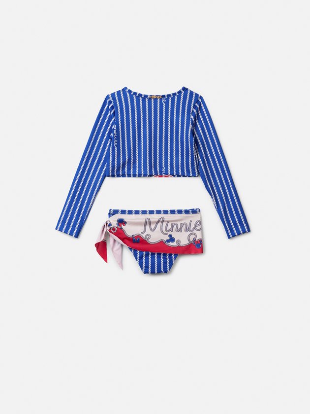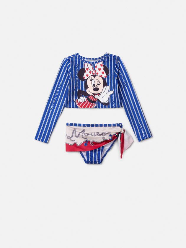 O biquíni infantil Animê Disney Minnie traz charme e segurança em uma só peça! Com estampa listrada navy e a divertida Minnie estampada, a blusa manga longa garante proteção extra contra os raios solares, enquanto a calcinha possui detalhe de faixa lateral, que deixa o look moderno e delicado. Confeccionado em tecido com proteção UV, é ideal para curtir praia e piscina com estilo. Dica: combine com chapéus ou ponchos Animê para um visual ainda mais encantador.