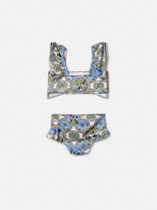 O biquíni infantil Animê Disney Mickey traz um mix perfeito de diversão e sofisticação para os dias de sol. Com estampa tropical em tons de azul e verde, o modelo possui top estruturado com alças largas franzidas e calcinha com babadinhos delicados na cintura, garantindo charme e conforto. O tecido é de toque macio, com excelente ajuste e secagem rápida, ideal para momentos de praia ou piscina. Dica: combine com chapéu ou saída Animê para um look beachwear cheio de personalidade.