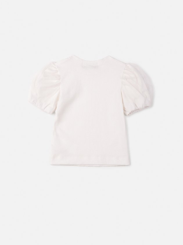 Blusa de Ribana com Mangas de Tule