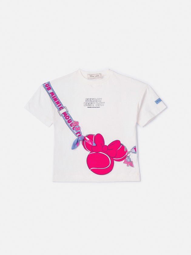 Blusa infantil com estampa de bolsa da Minnie Mouse, divertida e charmosa, perfeita para looks criativos e cheios de estilo. Confortável e versátil, é um destaque lúdico no guarda-roupa infantil. Ref.: N4889