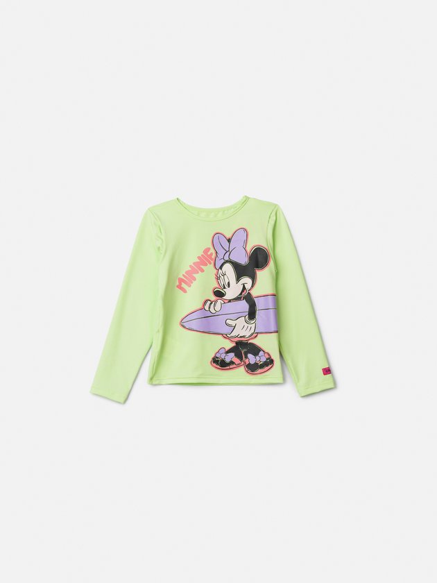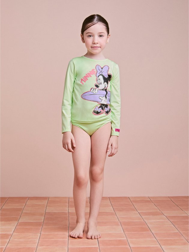 A blusa de praia Animê é perfeita para unir proteção e estilo nos dias ensolarados. Confeccionada em tecido com proteção UV, possui modelagem confortável de mangas longas e cor verde vibrante que se destaca. A estampa da Minnie com prancha roxa traz um toque divertido e cheio de personalidade, ideal para as pequenas que amam moda e praticidade.