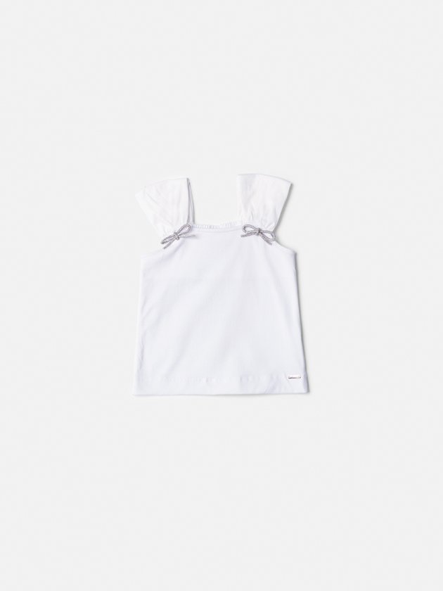 A blusa Animê branca é aquela peça versátil que não pode faltar no guarda-roupa das pequenas fashionistas. Confeccionada em tecido macio, ela traz um design clean e elegante, com alças largas adornadas por laços em strass que adicionam brilho e sofisticação na medida certa. Ideal para composições modernas e práticas, a peça pode ser usada tanto em produções casuais quanto em momentos especiais. Dica: combine com saia de tule ou short jeans para criar looks que vão do romântico ao descontraído com muito estilo.