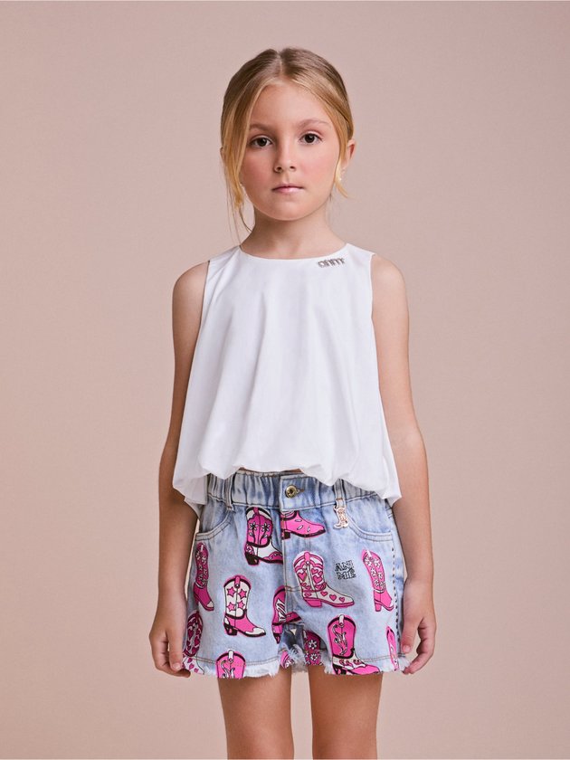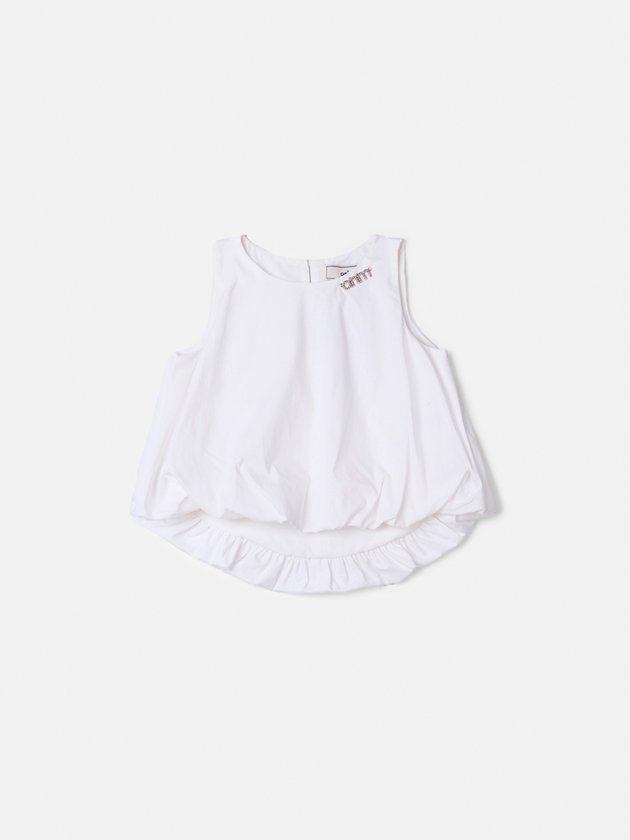 A Blusa Infantil de Tricoline Balonê é a escolha perfeita para composições elegantes e modernas. Desenvolvida em tricoline leve e estruturada, oferece conforto com caimento impecável. Sua modelagem ampla traz efeito balonê na parte frontal, criando volume delicado e visual sofisticado. Possui decote arredondado, acabamento refinado e fechamento posterior que facilita na hora de vestir. A parte de trás levemente alongada conta com detalhe franzido na barra, agregando movimento e charme. Versátil, combina facilmente com shorts, saias ou calças para looks estilosos. Ref.: N4912