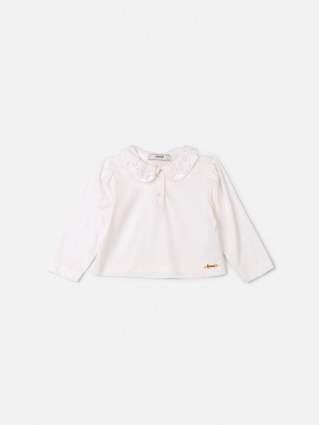 Blusa Manga Longa com Gola Dupla de Renda