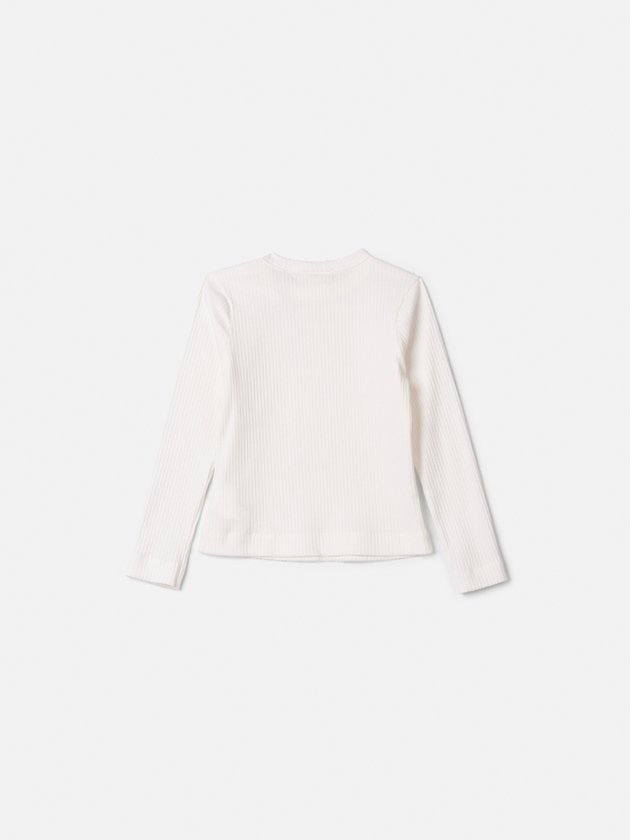 Blusa Manga Longa Off White Canelada com Pingete