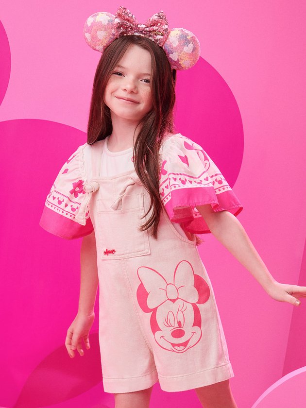 Mood Animê - Blusa fashion com mangas amplas estampadas, sem erro para deixar as meninas ainda mais charmosas. Esta peça é resultado de uma collab com a Disney, trazendo a adorável Minnie Mouse estampada em rosa neon. Possui uma abertura nas costas com botão, oferecendo um toque de estilo único. Composição: 96% algodão e 4% elastano. Mangas: 55%¨algodão e 45% poliéster. Ref.: N3416