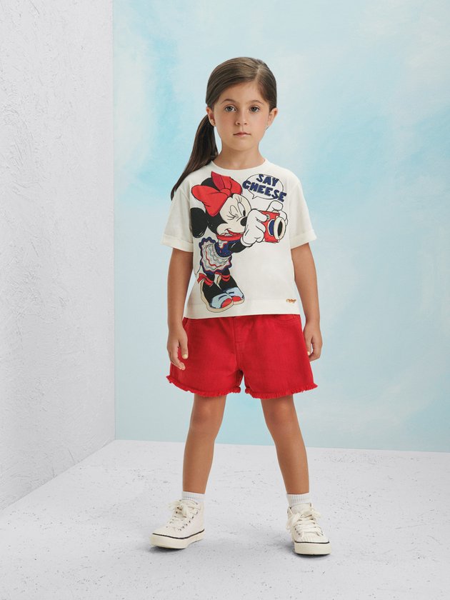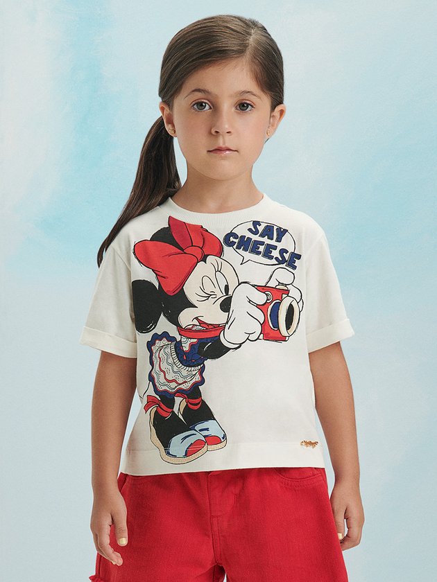 Esta blusa é perfeita para quem quer um look fashion e exclusivo. A estampa da Minnie Mouse fotógrafa é um charme a parte, com um toque de humor e personalidade. O tecido de meia malha é macio e confortável, ideal para o dia a dia. A manga dobrada dá um toque despojado à peça. Composição: 100% algodão. Ref.: P5394