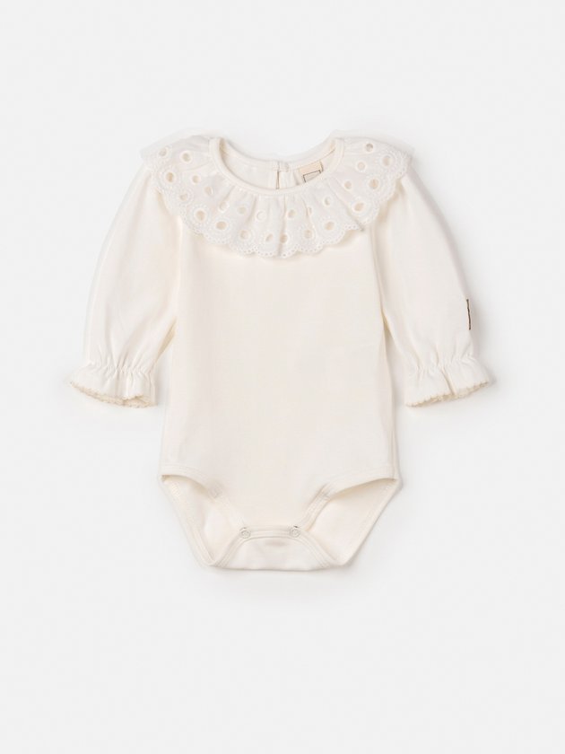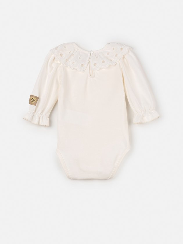 Must-have das Baby! Body nunca é demais no closet das meninas, confeccionado em cotton o body de manga longa Animê conta com gola de babados, frufru nas mangas, botões de pressão dourado e etiqueta decorativa, devido a sua golinha ele faz combinações charmosas com macacões, vestidos e salopetes. Impossível não se apaixonar. Composição: 96% algodão e 4% elastano. Ref.: L2048