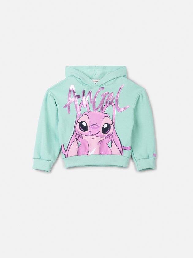 Para as fãs da personagem mais charmosa de Lilo & Stitch! O moletom verde menta com estampa da Angel e escrita metalizada rosa é puro charme. Ideal para dar um up nas produções de inverno com toque divertido e fashion.