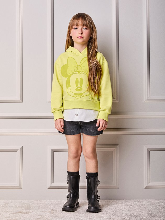 Este casaco a em tom verde lima aposta em uma proposta luminosa e contemporânea, com a Minnie reinterpretada de forma delicada e minimalista. A estampa monocromática cria um efeito sofisticado e atual, enquanto a sobreposição inferior adiciona profundidade ao design e um toque fashion inesperado. O contraste entre camadas valoriza o visual e reforça o cuidado construtivo da peça. Finalizada com detalhe assinado, é uma escolha elegante para quem busca um look diferenciado, moderno e alinhado ao DNA Animê. Obs: Moletom sem felpa. Ref.: N5359