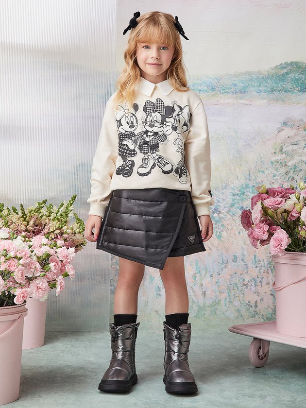 Os casacos de moletom são os aliados perfeitos para combinações que trazem conforto e modernidade no dia a dia das meninas. Feito em parceria com a Disney possui estampa da Minnie Mouse com vários look com a estampa da coleção, adornadas com strass cravejados. O casaco é confeccionado em algodão com punhos e barra em ribana. Finalizam seu design com etiqueta decorativa Animê na manga esquerda. Composição - Casaco: 100% algodão. Ref.: N3681 *Nota: A golinha não acompanha a peça.