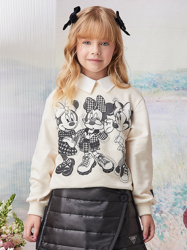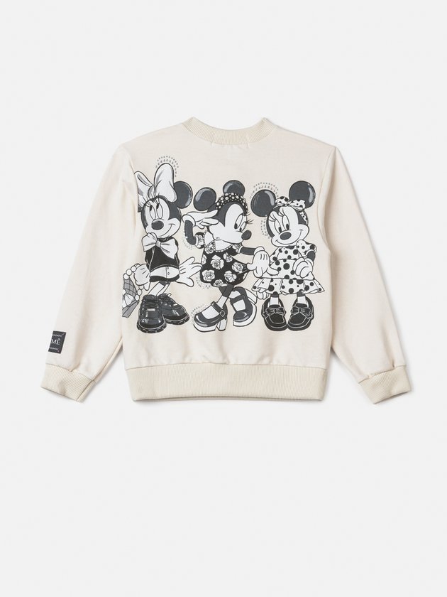 Os casacos são os aliados perfeitos para combinações que trazem conforto e modernidade no dia a dia das meninas. Feito em parceria com a Disney possui estampa da Minnie Mouse com vários look com a estampa da coleção, adornadas com strass cravejados. O casaco é confeccionado em algodão com punhos e barra em ribana. Finalizam seu design com etiqueta decorativa Animê na manga esquerda. Composição - Casaco: 100% algodão. Ref.: N3681