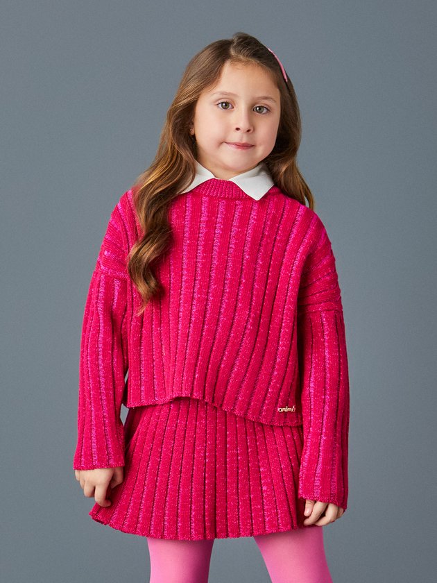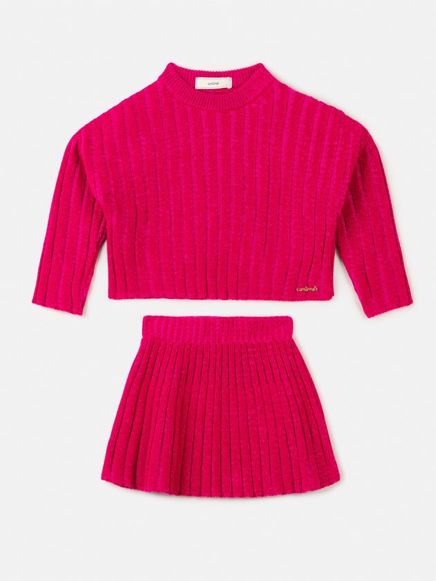 Mood Fashion! Esse conjunto já é destaque na coleção de inverno, elaborado em tricot pink neon é composto por casaco e saia, peças que podem ser usadas juntas ou em compôs diferentes. Seus detalhes são únicos do jeitinho que as meninas Animê amam. Aposte! Composição: 100% acrílico. Ref.: N2834