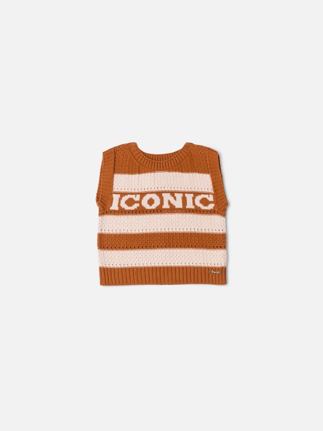 Colete Infantil Menina Animê de Tricot com Listras Iconic