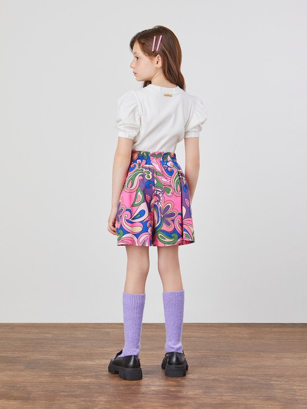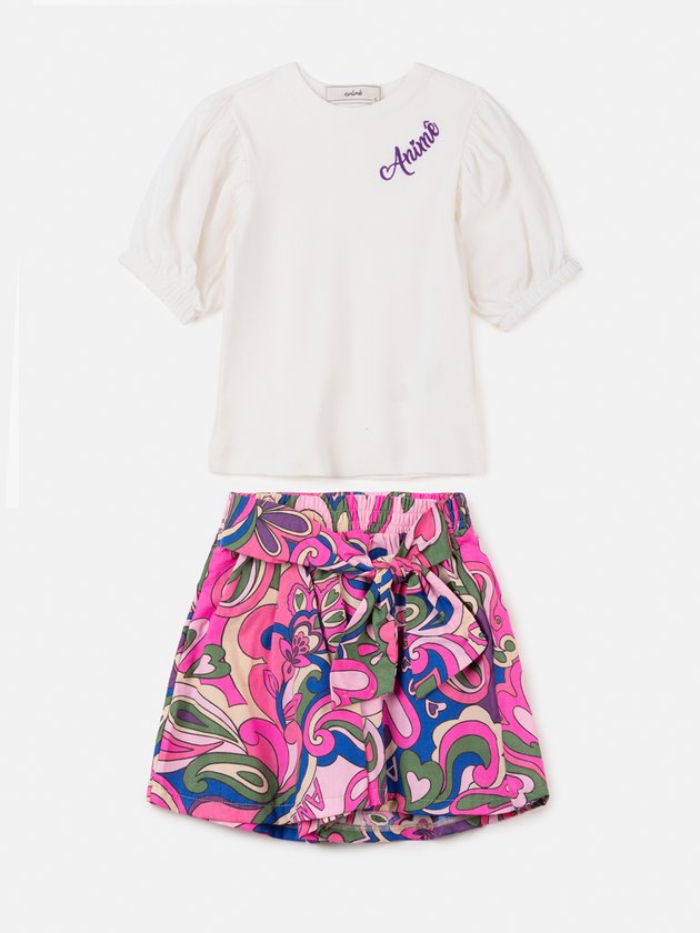 O conjunto charmoso da Animê é composto por blusa de manga curta e short de tecido colorido deixando as meninas ainda mais modernas no dia a dia, combine esse look com tênis branco ou mocassim para obter uma combinação fashionista. Na parte de cima a blusa conta com mangas bufantes e bordado na cor roxa, já o short foi confeccionado em tricoline com elástico na cintura e faixas aplicadas para formar laço, impossível não se apaixonar. Composição: 98% algodão e 2% algodão. Ref.: N3156