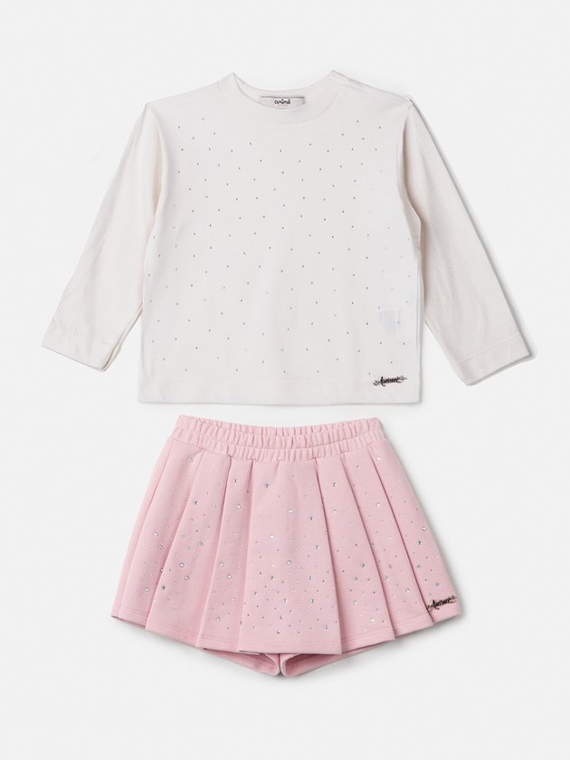 O conjunto rosa infantil da Animê oferece um mix de estilo e conforto. A blusa off white possui mangas curtas e um patch da Animê aplicada na barra. O short saia possui lindos plissados frontais com elástico no cós. Para acrescentar ainda mais charme ao conjunto, ambas trazem strass de diferentes tamanhos cravejados por toda a extensão frontal. É a escolha ideal para garantir que as pequenas estejam sempre na moda sem abrir mão do bem-estar. Composição: 100% Algodão. Ref.: P5670