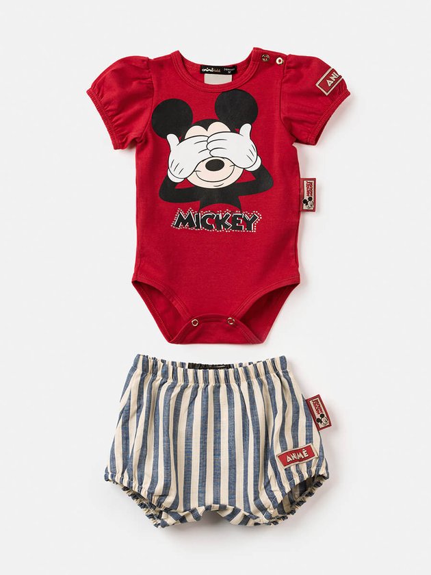 O conjunto Animê veio para conquistar o coração de mães e filhas que amam o Mickey, composto por body e short ele traz detalhes únicos como mangas bufantes, botões de pressão no ombro e entrepernas e estampa frontal do Mickey, o short é puro charme e traz acabamento de elástico na cintura e barra além de estampa do Mickey na parte de trás, seu design diferenciado vai deixar as baby Animê ainda mais fofas. Composição - Body: 96% algodão e 4% elastano. Short: 100% algodão. Ref.: L1970