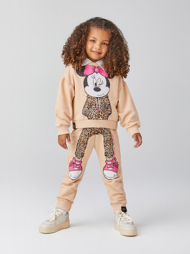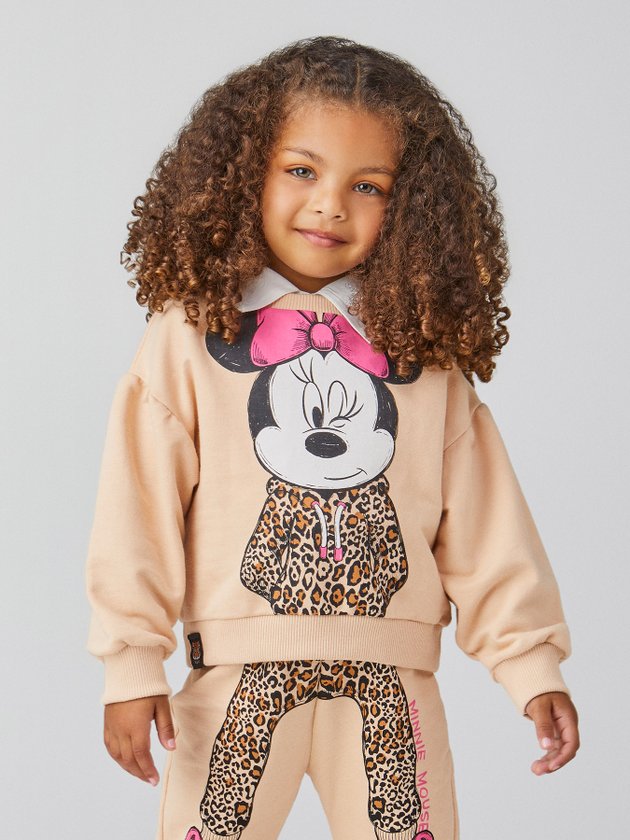 A collab Disney + Animê trouxe as peças mais charmosas para as meninas terem no closet. O conjunto da Minnie é confeccionado em moletom e composto por casaco e calça, na parte frontal trazem uma incrível estampa que se complementa. Nos detalhes o conjunto conta com acabamento de elástico e etiquetas decorativas. Composição: 100% algodão. Ref.: P5144