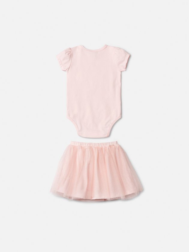 Conjunto Infantil com Body e Saia Tule Rosa