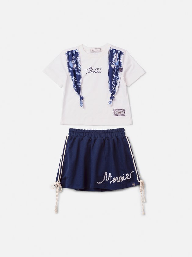 O conjunto Animê Minnie Navy é a escolha perfeita para unir conforto e estilo. A blusa off white ganha charme com lenços aplicados nos ombros e lettering delicado da Minnie, enquanto a saia rodada azul marinho traz movimento e destaque com o nome da personagem em efeito corda. A proposta navy deixa o look moderno, sofisticado e cheio de personalidade. Ideal para ocasiões especiais, passeios ou até festinhas, combina muito bem com sandálias ou tênis casuais. Um visual fashionista que vai encantar mães e filhas!