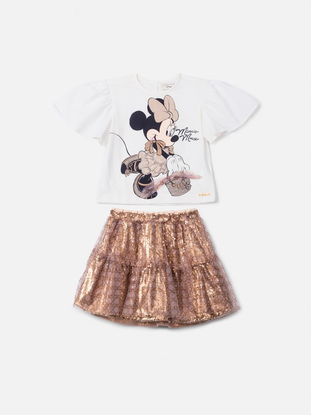 O conjunto Animê une conforto e sofisticação em um look digno de fashionista mirim. A blusa branca traz estampa exclusiva da Minnie com detalhes em laço e toque moderno, enquanto a saia em tule dourado com transparência e brilho sutil garante um efeito encantador. Perfeito para festas, passeios ou eventos especiais, esse visual traduz o charme da infância com sofisticação e diversão. Aposte em uma sandália dourada ou sapatilha delicada para valorizar ainda mais o glamour do conjunto.