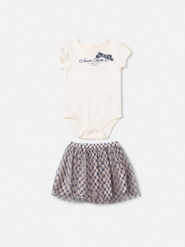 Conjunto de Monograma com Tule Estampado