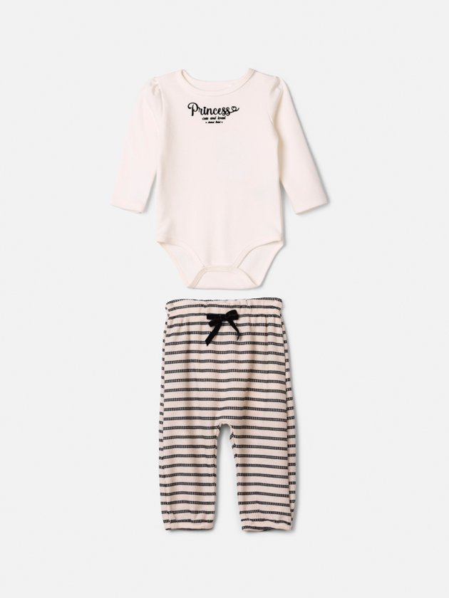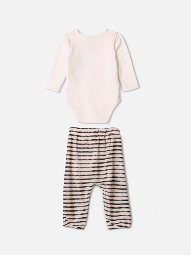 Conjunto Manga Longa Listrado com Laço de Veludo