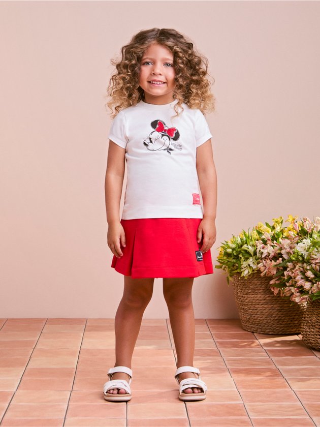 Este conjunto Animê traz o encanto da Minnie Mouse em uma produção moderna e cheia de estilo. A camiseta off white conta com estampa fofa da personagem, laço vermelho em destaque e acabamento delicado. Acompanha saia vermelha plissada com patch oficial da Minnie, garantindo um toque divertido e fashion. Ideal para passeios, festinhas ou momentos especiais, une conforto e tendência. Dica: combine com tênis branco para um look casual ou sapatilhas para ocasiões mais delicadas.