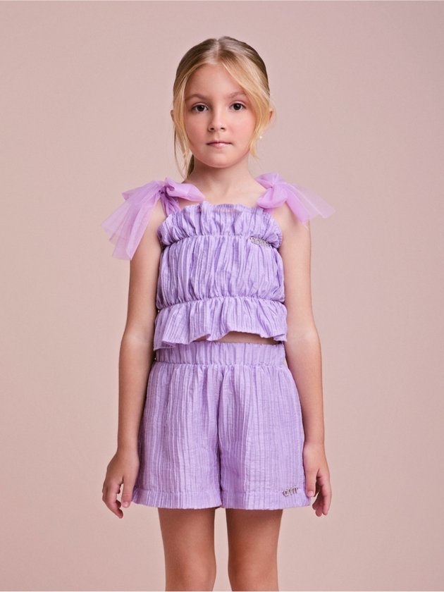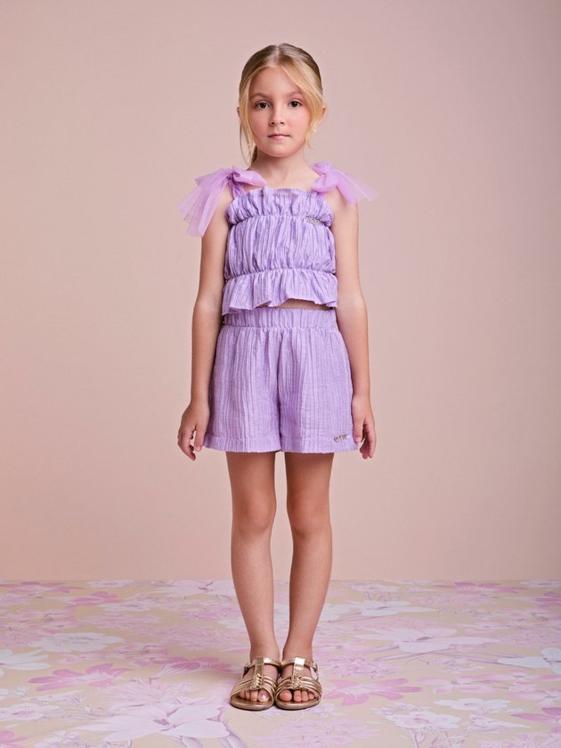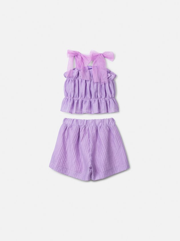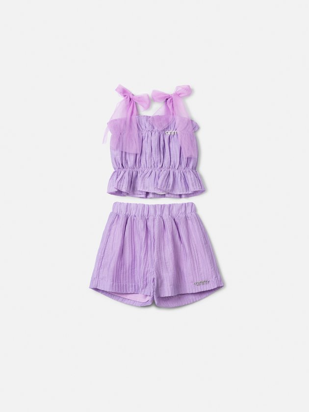 Conjunto Lilás de Tecido Anarrugado com Laço