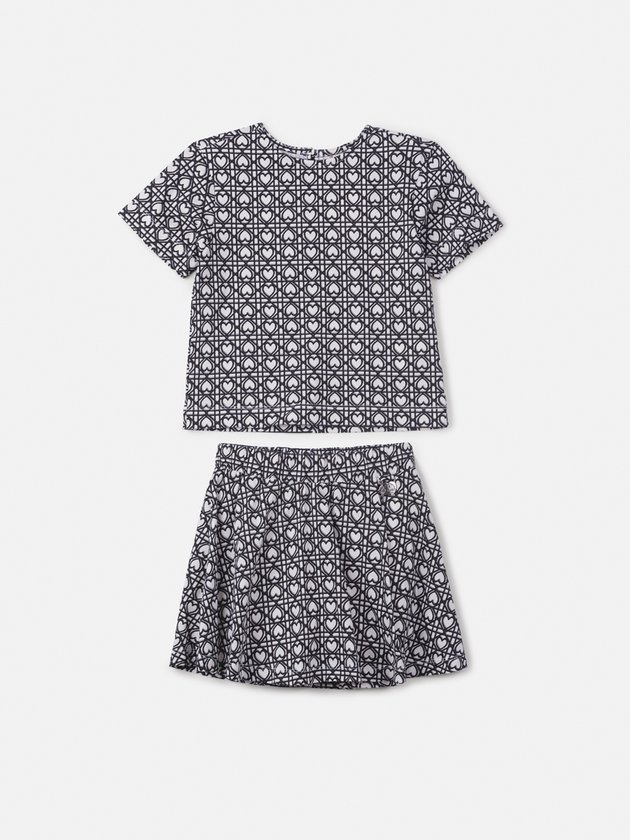O mix de conforto e estilo que não pode faltar! O conjunto com estampa de monograma de corações em preto e off white é superversátil. Com modelagem ampla e saia em camadas, é perfeito para o dia a dia cheio de personalidade. Ref.: N4819