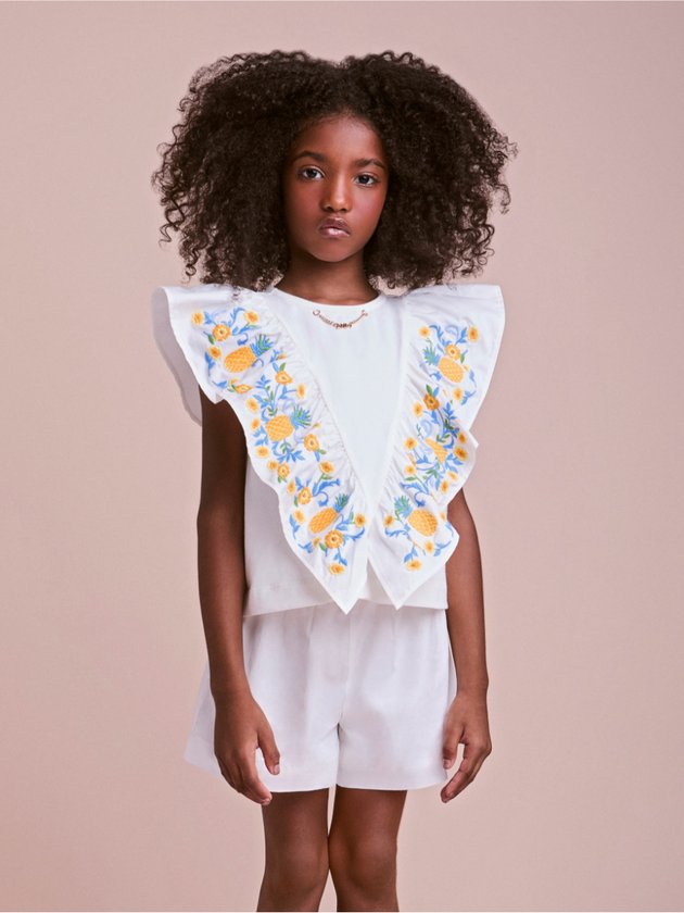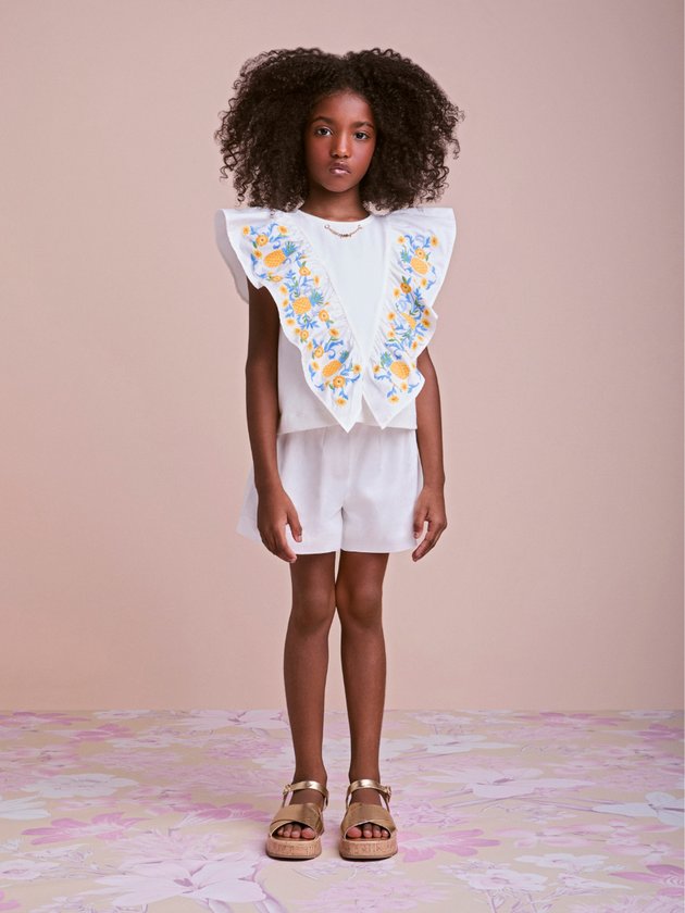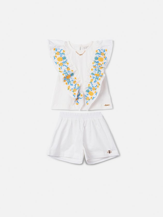 Conjunto Branco com Bordados Tropicais