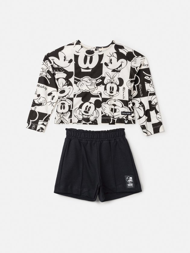 Divertido e descontraído, este conjunto preto com estampa da Disney é ideal para fãs dos personagens clássicos. Perfeito para looks casuais e confortáveis.