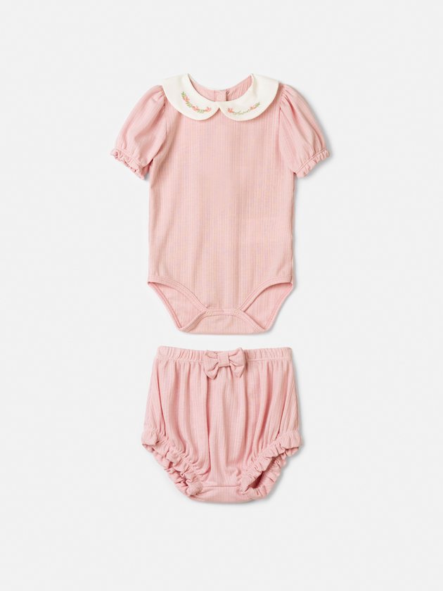 Conjunto Rosa com Bordado Floral na Golinha