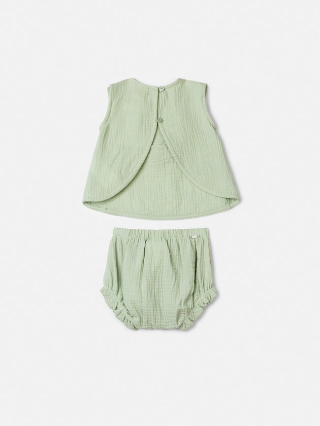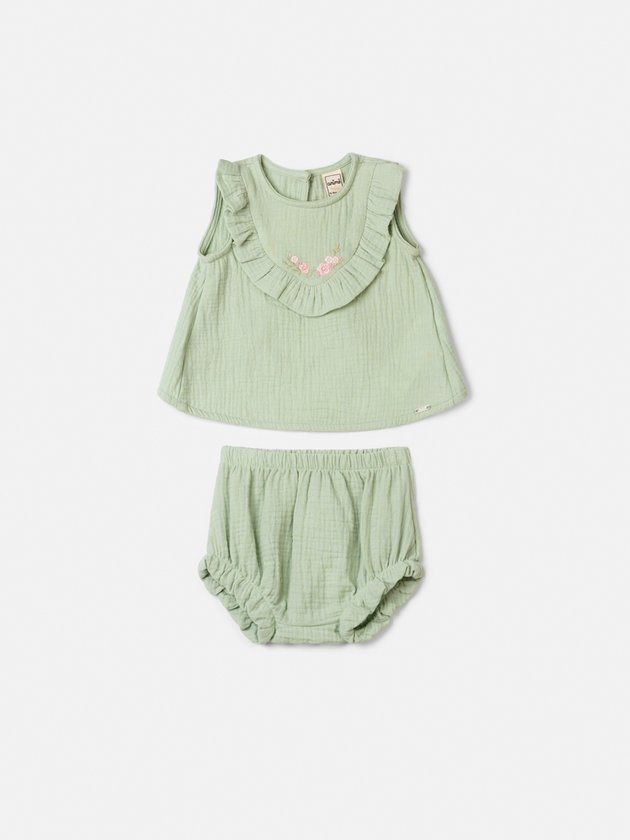 Conjunto Verde Anarrugado com Bordado Floral