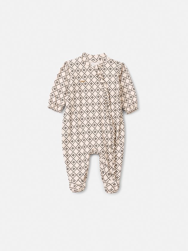 Este macacão aposta na assimetria como elemento de design sofisticado. A estampa geométrica cria identidade visual forte, enquanto o babado lateral adiciona movimento e quebra a linearidade da peça com elegância. O fechamento frontal facilita o vestir, sem comprometer a estética. Uma proposta moderna, com acabamento cuidadoso e visual marcante, pensada para quem busca diferenciação e refinamento em cada detalhe. Ref.: L2651