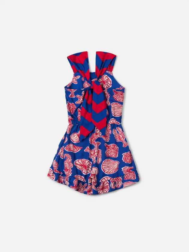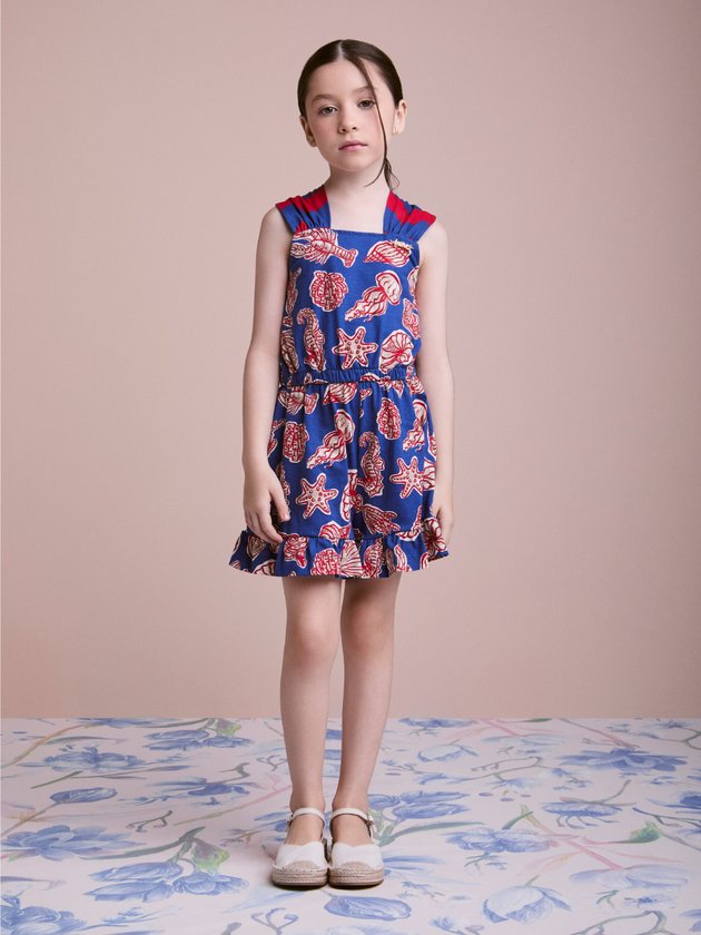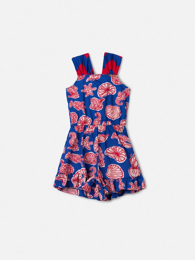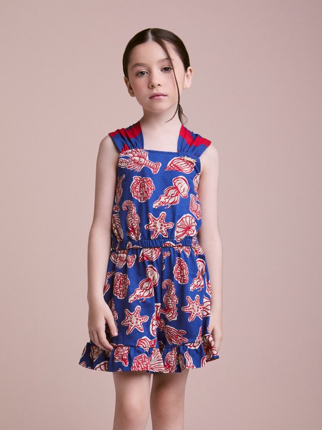 O Macaquinho Infantil Estampa Fundo do Mar é perfeito para dias quentes e produções cheias de cor. Desenvolvido em tecido leve com ótimo caimento, apresenta modelagem soltinha que proporciona liberdade de movimentos. Possui alças largas estruturadas, recorte na cintura que define a silhueta e short integrado, garantindo praticidade e conforto. A estampa temática com conchas, estrelas-do-mar, cavalos-marinhos e elementos marinhos cria um visual tropical moderno, com contraste vibrante entre fundo azul e desenho em vermelho. Ideal para passeios, férias e momentos especiais de verão. Ref.: N4999