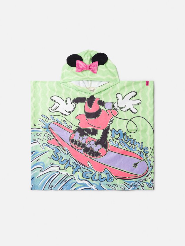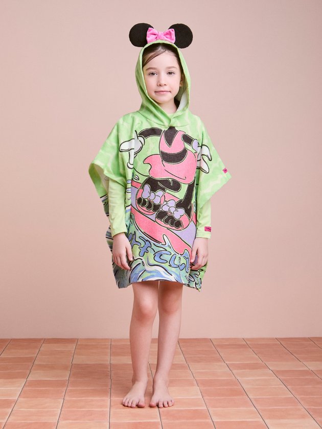 O poncho infantil Animê Disney Minnie é puro charme e praticidade! Confeccionado em tecido macio e atoalhado, traz capuz funcional e uma estampa divertida da Minnie surfando, deixando os momentos pós-banho ou saída da piscina muito mais alegres. A modelagem solta garante conforto, enquanto o visual colorido combina com o espírito divertido do verão. Dica: perfeito para levar na mala de férias e usar sobre o biquíni ou maiô da linha Minnie.