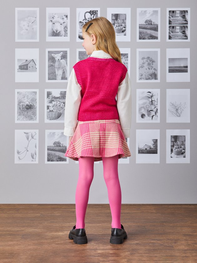 Saia de Tweed Xadrez Rosa