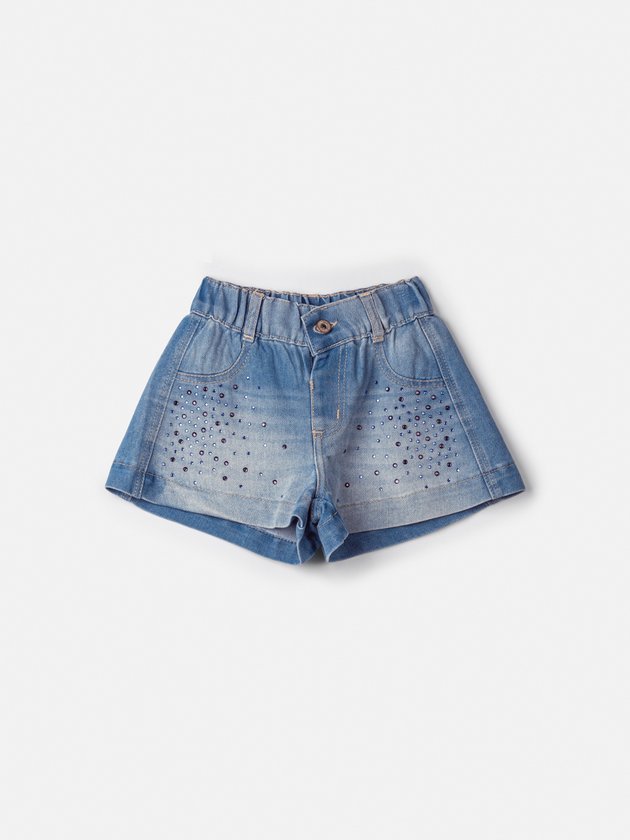 Brilhe com estilo! Este short jeans é decorado com apliques de strass na frente, criando um efeito sutil e encantador. Com um corte confortável e um tecido macio, este shorts é perfeito para combinar com blusas e Blusas, garantindo um visual charmoso para qualquer ocasião. Ideal para as pequenas que adoram um toque de glamour no dia a dia.