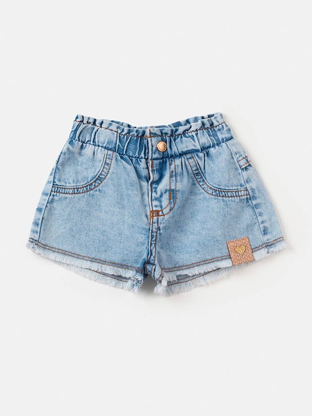 Peça jeans nunca é demais no closet das meninas, é aquele item que traz muita tendência e modernidade, o Short Jeans Animê conta com detalhes pra lá de especiais como cintura de elástico, botão de pressão e bolso funcional, seus looks podem ser compostos com body ou blusa, impossível não se apaixonar. Seu design é finalizado com barra desfiada e etiqueta decorativa. Composição: 100% algodão. Ref.: L1847