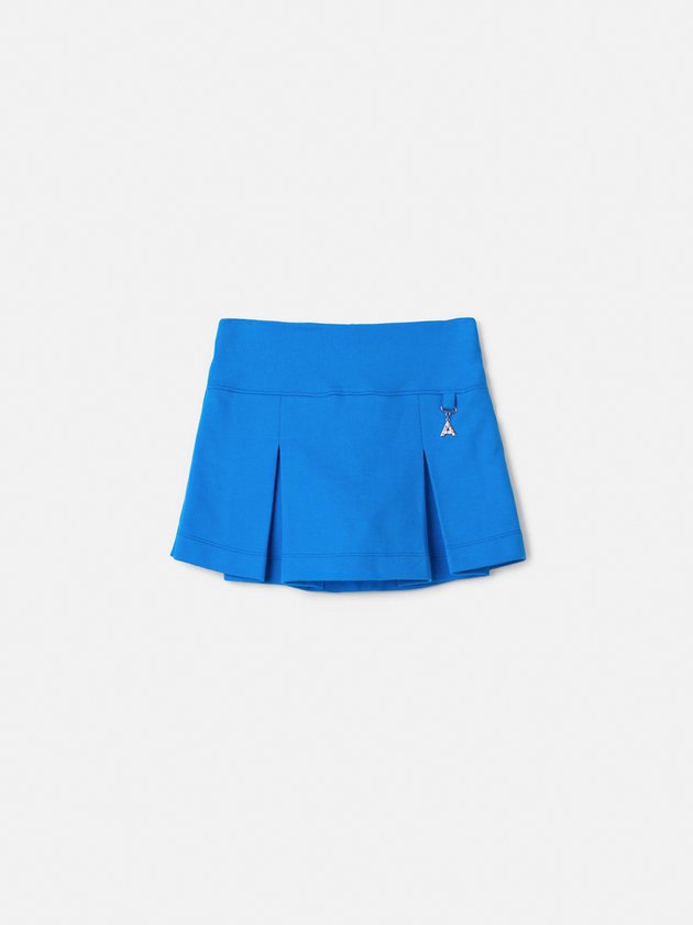 Delicada e atual, esta saia traz movimento e charme às produções da estação. Saia curta azul vibrante com pregas frontais e um detalhe decorativo em formato de letra A na lateral direita, confeccionada em tecido leve e confortável, com cós largo e estrutura que oferece ajuste e liberdade de movimento.