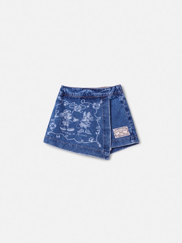 O charme do jeans com o toque mágico Disney! O short saia infantil Animê traz estampa exclusiva de Mickey & Minnie em mood navy, unindo conforto e estilo em uma peça versátil. O modelo combina o visual moderno do jeans com o caimento leve e prático, perfeito para os looks de verão das pequenas fashionistas. Ref.: N5003