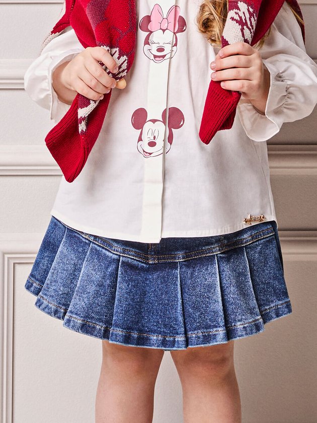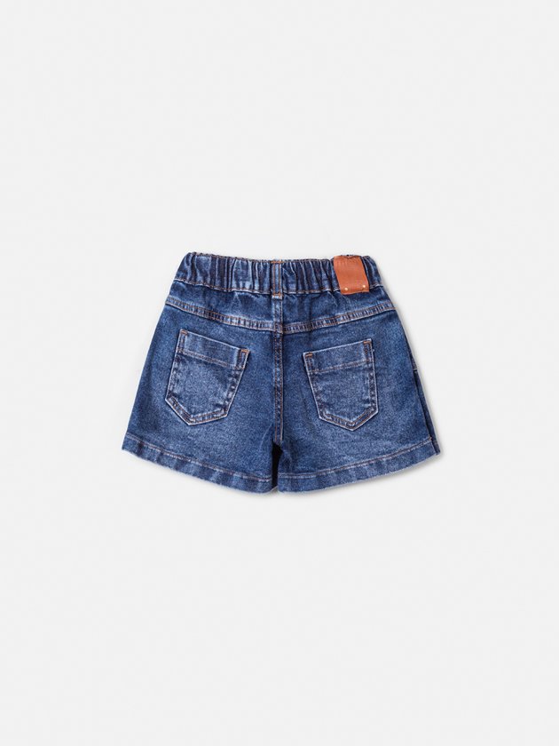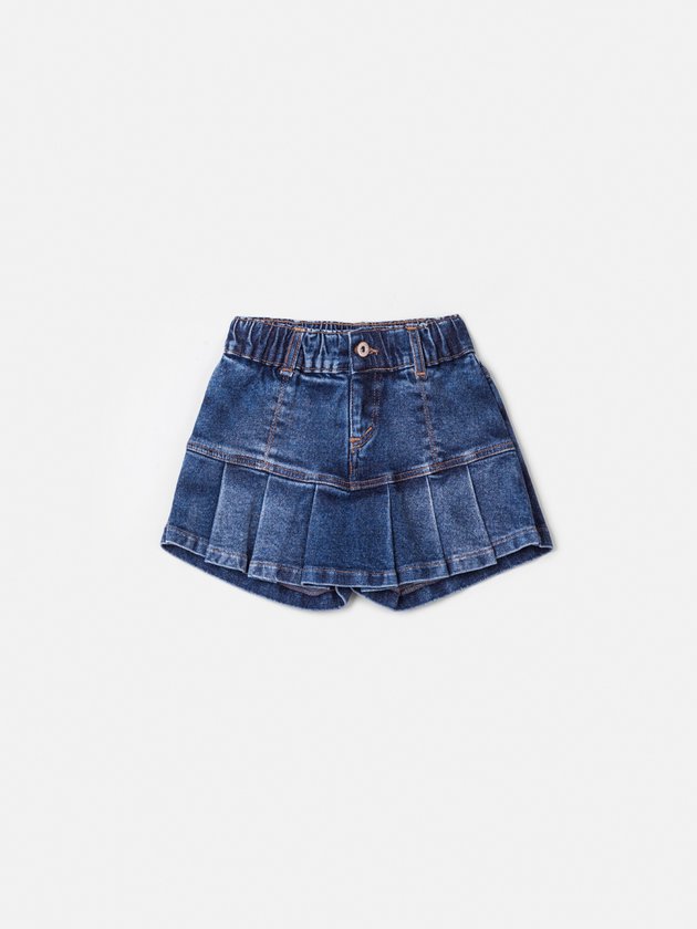 Short Saia Infantil Menina Animê Jeans com Pregas e Recortes