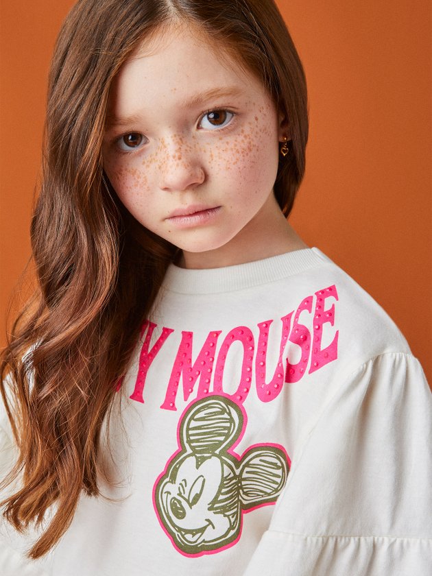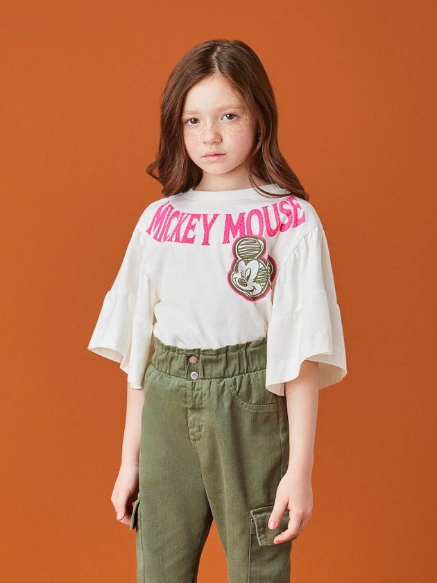 A blusa de manga curta Animê é perfeita para quem busca estilo e conforto. Confeccionada em meia malha, possui mangas de babados que dão um toque fashion ao visual. Com cor pérola e estampa do Mickey Mouse, essa peça é ideal para compor looks descontraídos e divertidos. Além disso, a etiqueta decorativa aplicada próxima à barra adiciona um charme extra à blusa. Composição: 100% algodão. Ref.: N2892