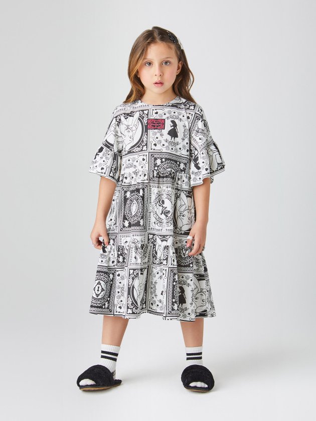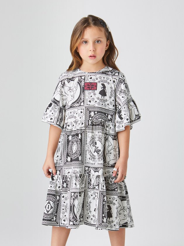 A collab da Disney + Animê trouxe peças exclusivas de Alice no País das Maravilhas - O visual único das peças vai conquistar o coração das fashionistas, ele traz em seus detalhes mangas com babados, etiquetas exclusivas e estampa preto e branco. Nos momentos especiais essa pode ser a escolha perfeita de look, combine ele com tênis estiloso, coturno ou sandália. Composição: 100% algodão. Ref.: N2597
