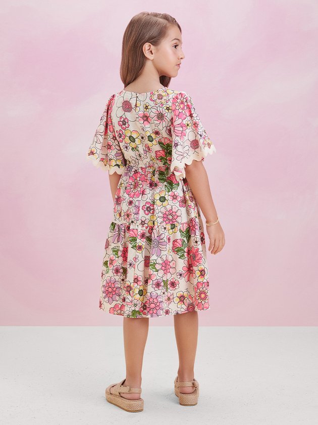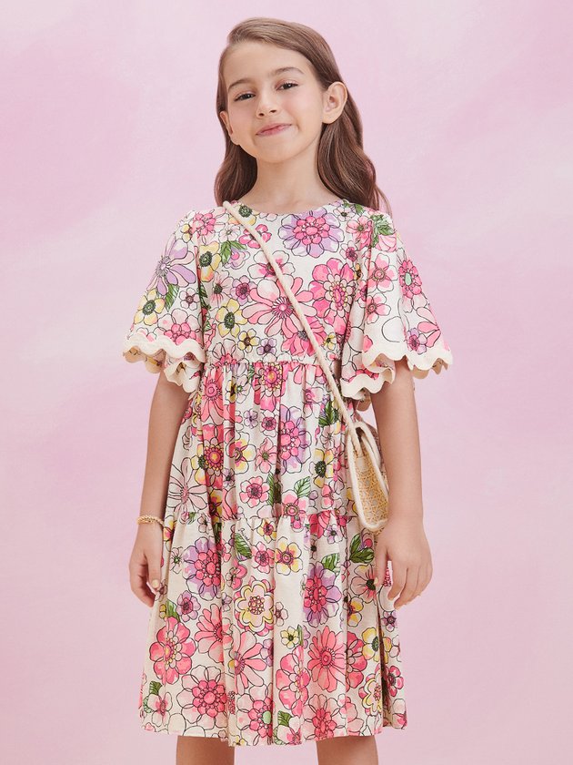 Esse vestido fashion infantil foi confeccionado com tecidos naturais que proporcionam conforto e leveza. Sua estampa floral exclusiva Animê traz ainda mais exclusividade ao closet das meninas. A aplicação de sianinhas adiciona um charme especial. Com uma faixa na cintura, oferece um ajuste perfeito. Seu comprimento midi é elegante e moderno. Perfeito para ocasiões especiais ou passeios, este vestido irá encantar o coração de mães e filhas com seu visual único. Composição: 42% algodão, 38% viscose, 14% modal e 6% linho. Ref.: N3223