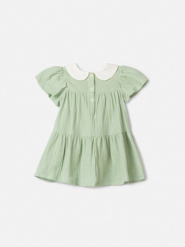 Elegância natural define esse vestido em gaze verde menta. A gola boneca bordada traz delicadeza artesanal, enquanto a saia fluida e os babadinhos nas mangas completam a peça com charme poético. Ref.: L2560