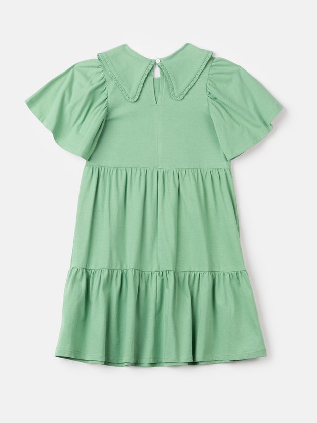 Confeccionado em meia malha o vestido verde alecrim Animê é perfeito para compor looks modernos e confortáveis para o dia a dia das meninas, com detalhes apaixonantes ele traz maxi gola com bordado, mangas evasê e saia marias, combine com sandália ou sapatilha para conquistar o coração delas. Composição: 100% algodão. Ref.: N2656