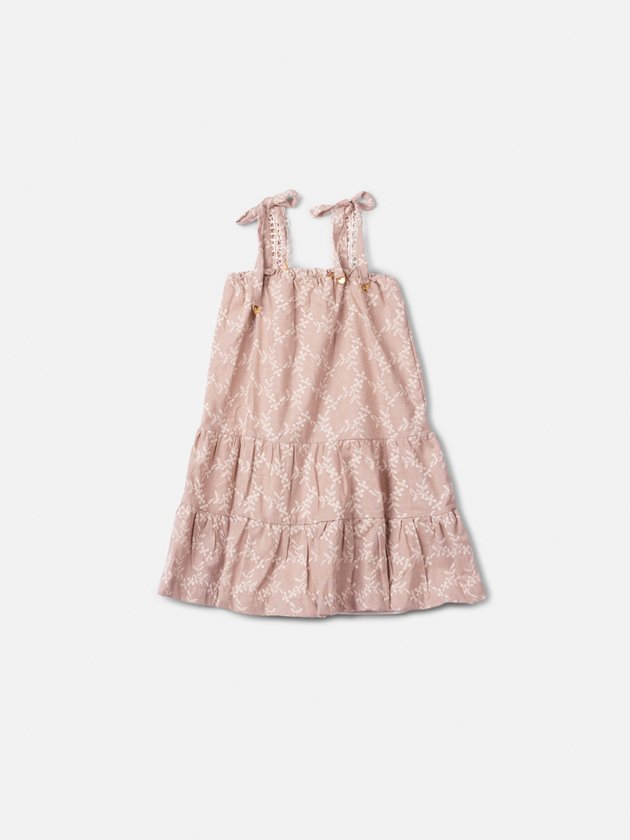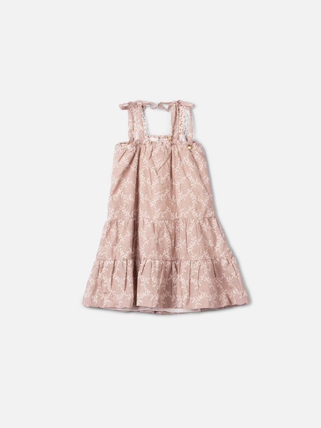 Encanto em cada detalhe: o vestido Animê bege é confeccionado em tecido leve com bordados florais, trazendo um ar romântico e atemporal. As alças com delicados acabamentos em laise e as camadas franzidas dão fluidez e movimento à peça, perfeita para acompanhar os momentos mais especiais da sua pequena. Versátil e sofisticado, pode ser combinado com sandálias ou sapatilhas para um look elegante em festas, passeios ou encontros em família.