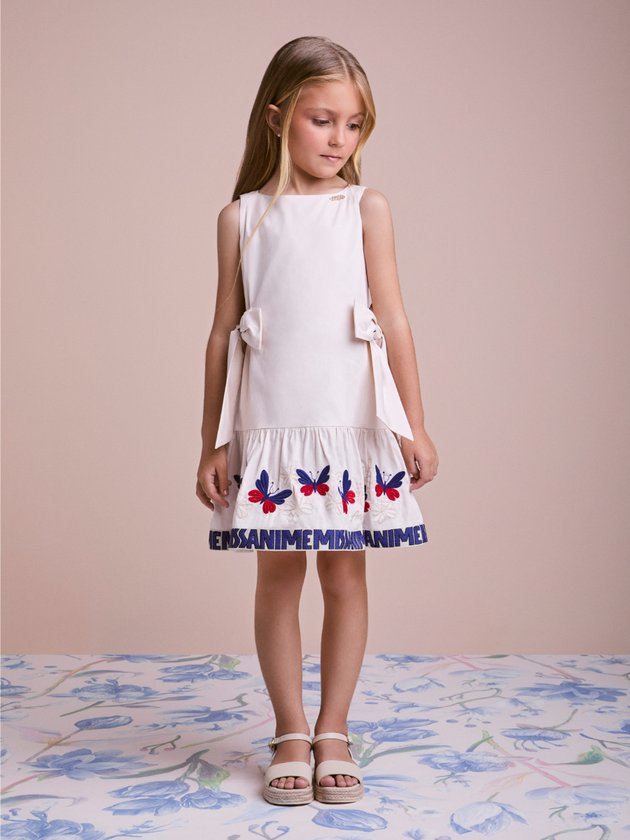 Delicado e cheio de fantasia, o vestido com borboletas bordadas ganha ainda mais charme com laços aplicados. Uma peça que une romantismo e estilo, ideal para criar produções encantadoras em momentos únicos. Ref.: N5046